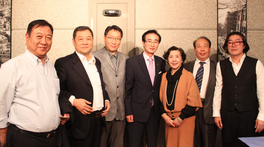 协会名誉会长赵青、会长姚佳(左一)与韩国著名企业届、艺术界名人交流探讨后合影留念